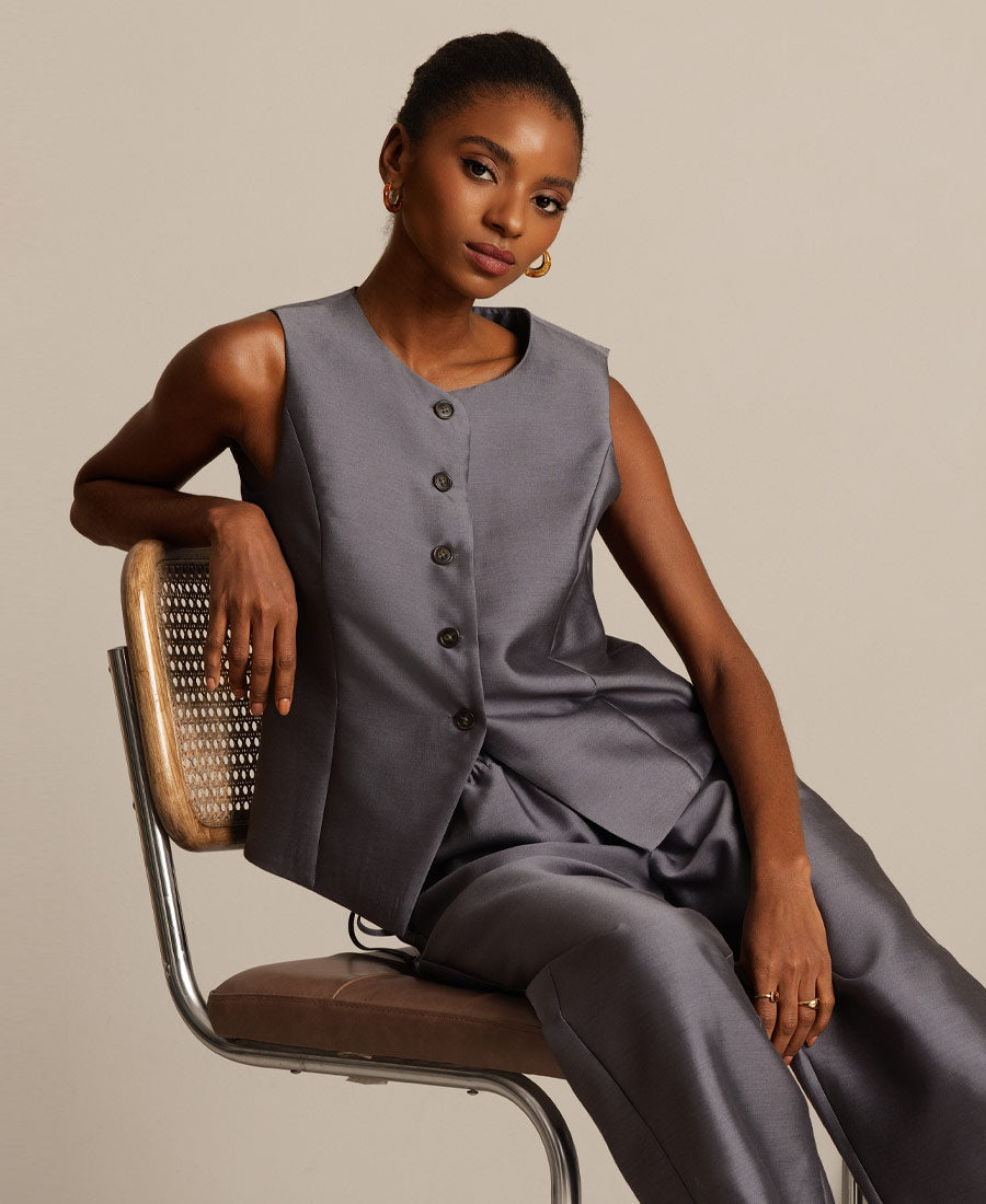 32Momme Silke-Ull Blandings Kvinners Vest med Knapplomme Design