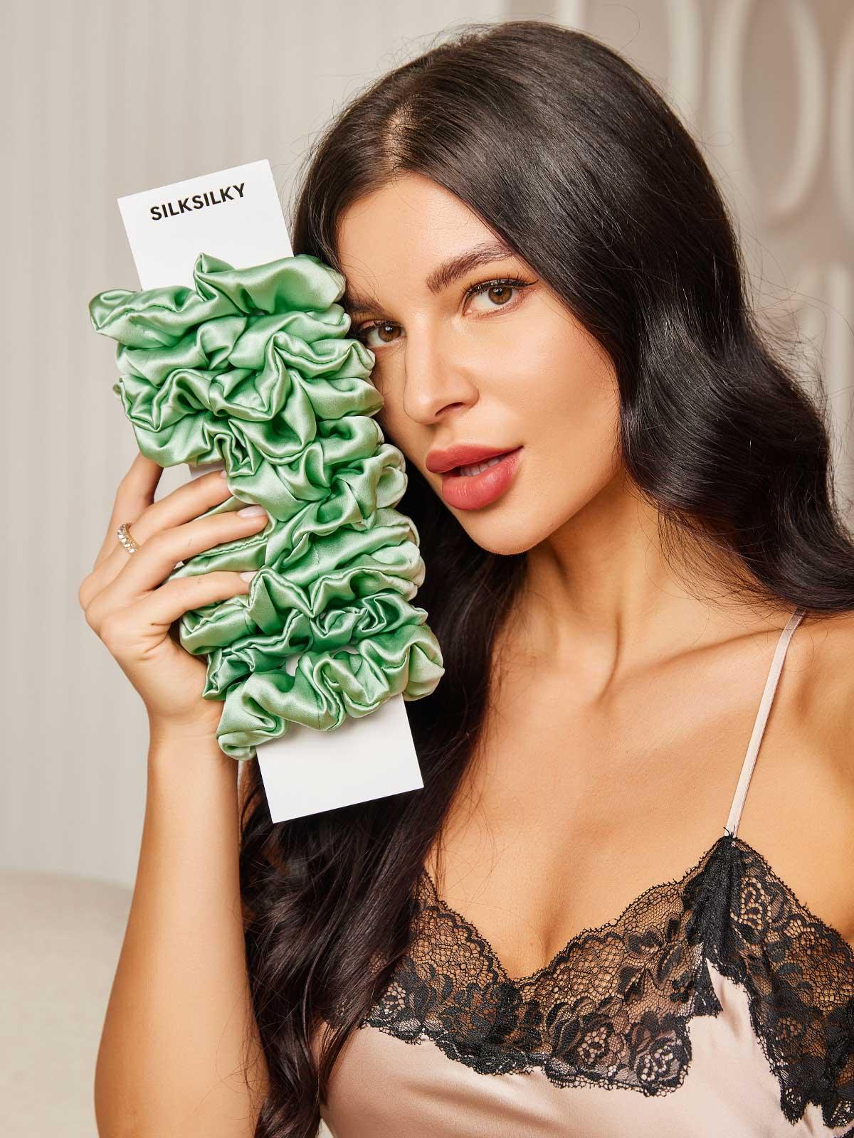 10Stk Ren Silke Stor Hårstrikk - 3.5cm