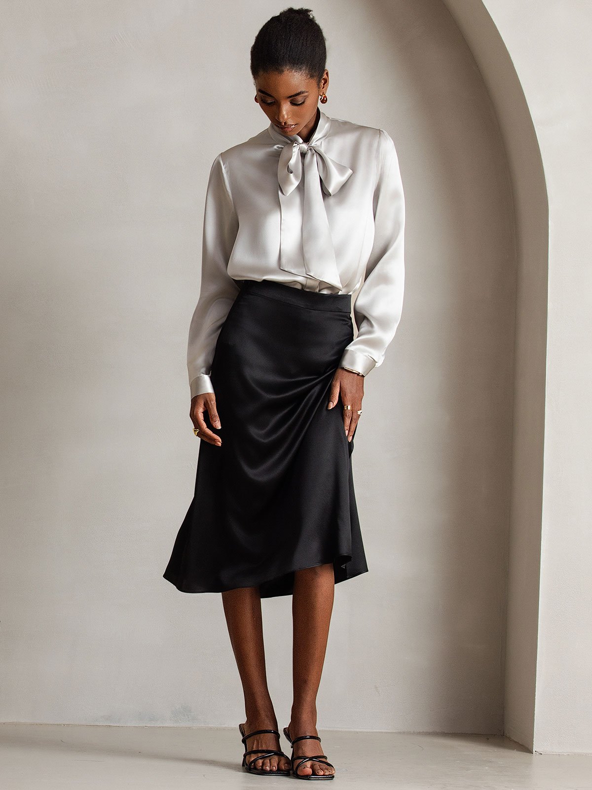 The tie-neck is so versatile—I’ve worn it as a bow and just letting it hang as a ribbon. The silk feels soft and smooth.