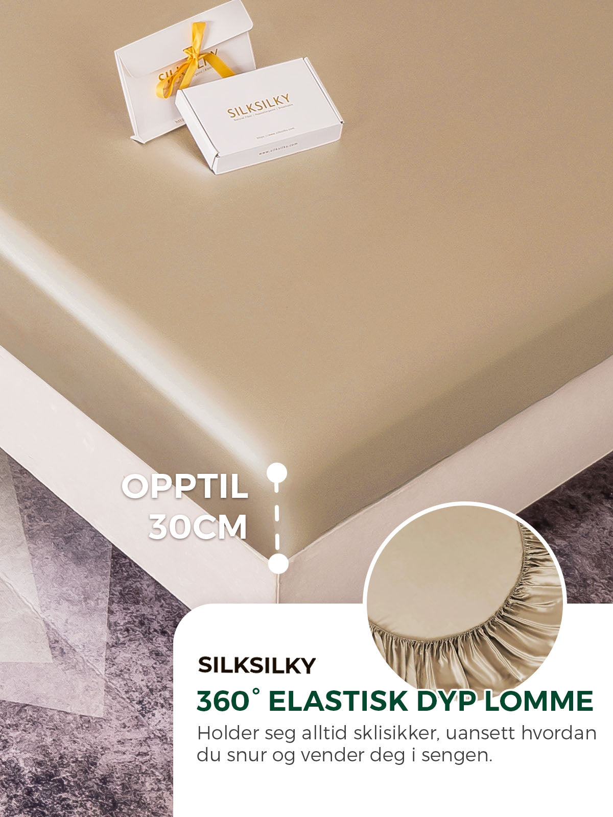 Vårt silkesengetøy er GOTS (Global Organic Textile Standard) sertifisert, garanterer ingen skadelige stoffer i produksjonen og oppfyller høye standarder for miljømessig bærekraft – for å beskytte helsen din og planeten.