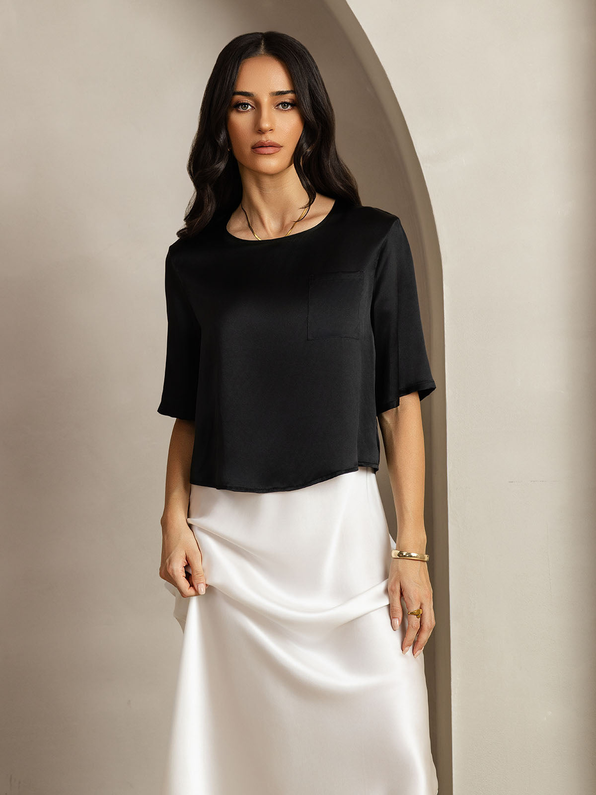 T-shirt camicetta da donna casual a mezza manica in pura seta